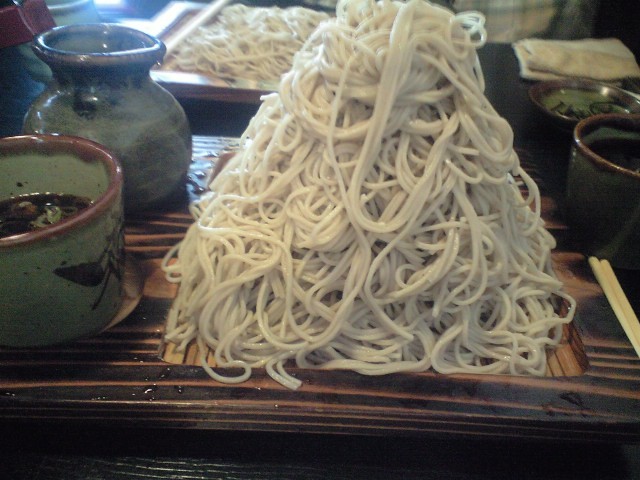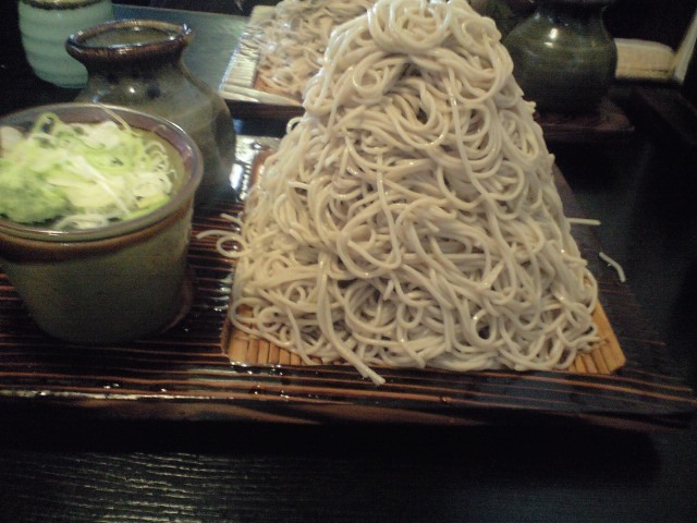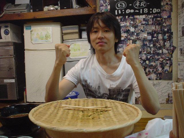 日曜日は「元祖大食い王決定戦」の東京予選でした。 大食い以外の自己PR欄に「イケメンです」って書いて 書類選考落ちしたアホ王子は 代わりに大食いチャレンジメニューに挑戦することにしました! 今回チャレンジするのは総重量4kgのラーメンです。 今回はとっても気合が入っていました。 ・数日前から大食いを重ねて胃の容量確保はバッチリです ・前日の食事は控えて胃の中身は空っぽです ・朝から走ったりしてとってもお腹が減っています ・店の開店時間前に到着しました ここまではバッチリです。 こんなバッチリな状態で店に入り食券販売機を確認します。 チャレンジメニューの食券は無さそうなので 中国人っぽい店員さんに 「大食いチャレンジしたいけど、食券じゃないですよね?」と聞きます。 店員さんが「ショ~ケンは無いよ」と答えます。 王子が「ではチャレンジしたいのでおいします」と伝えます。 店員さんがもう一度「ショ~ケンは無いよ」と答えます。 王子が「食券が無いのは分かったので、チャレンジお願いします」と再度伝えます。 さらに店員さんが「ショ~ケンは無いよ」と答えます。 ここで気付きました! 店員さんは「食券は無いよ」じゃなくて 「賞金は無いよ」って答えてました。。。 準備がバッチリだと思ってたのに 一番確認しなきゃいけないことを確認してませんでした(>_<) 自分は良いとしても 観に来てくれた筧さんとプミにとっても申し訳なかったです。。。 そんなこんなで凹んで店を後にして 向かったのは近くにある「味奈登庵」というお蕎麦屋さん。 ここは超大盛な蕎麦が食べれる素敵なお店です。 食べたのはこの「富士山盛り」という名前の山盛り蕎麦!ど~ん!